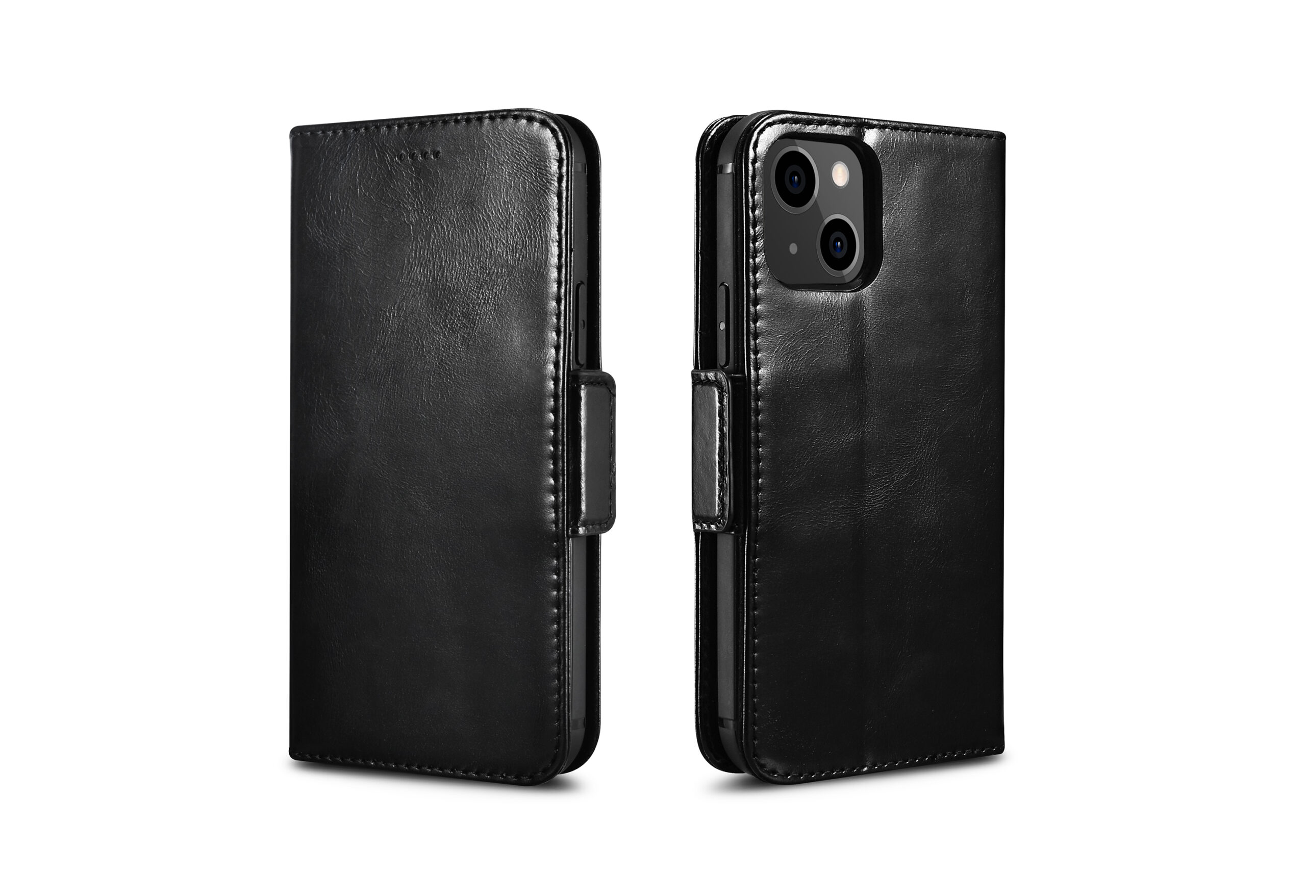 Genuine leather wallet case for iPhone 13 Mini – Black