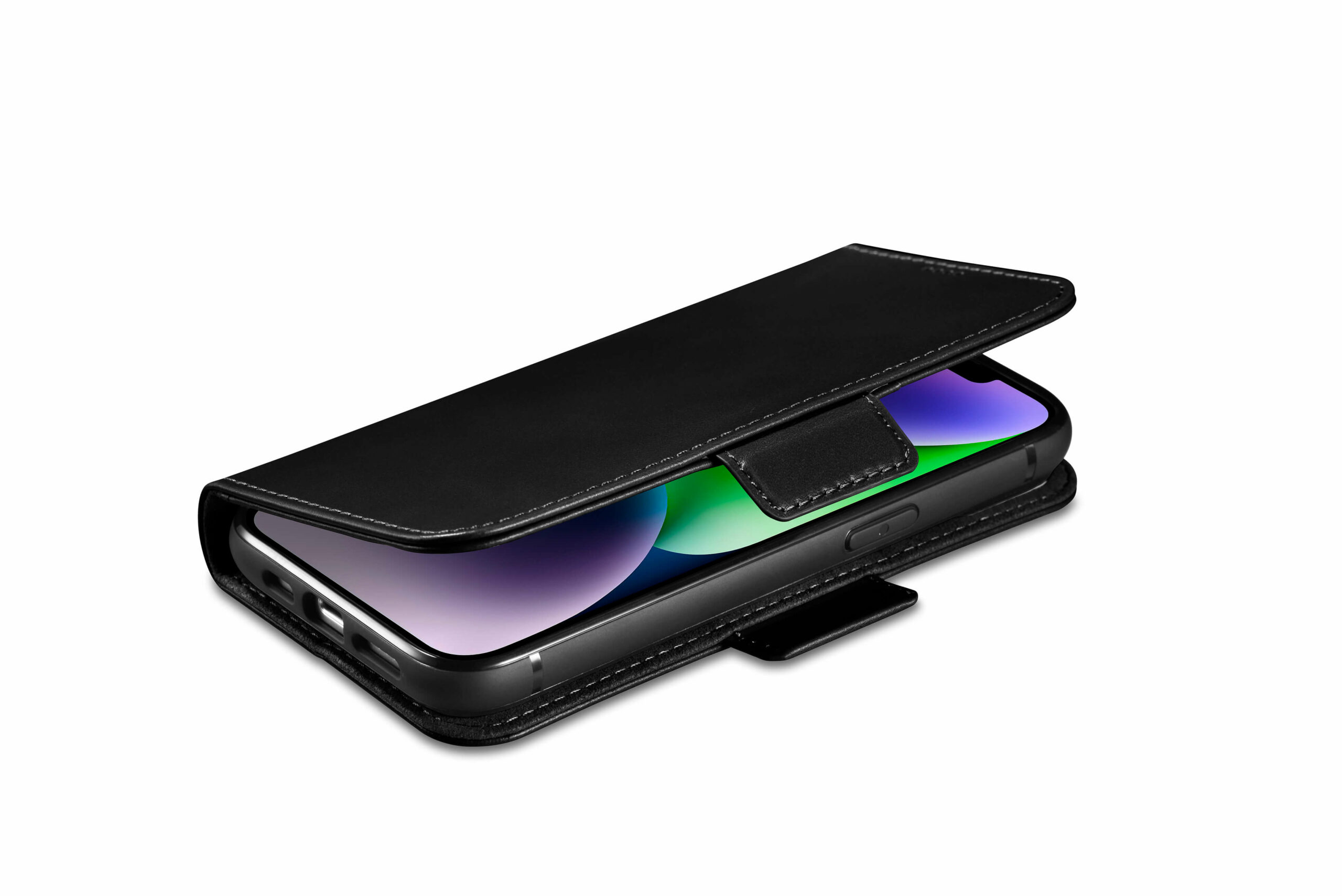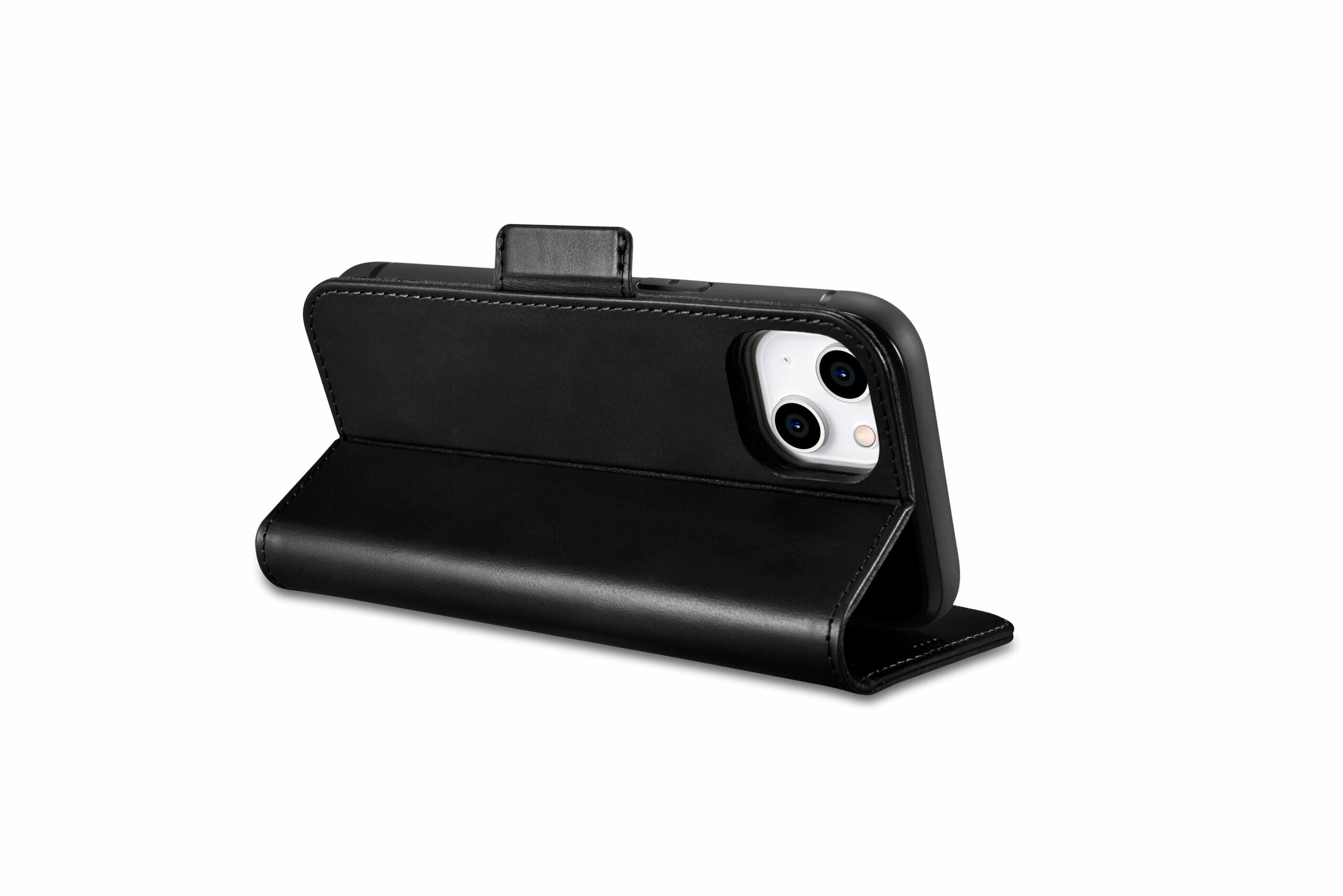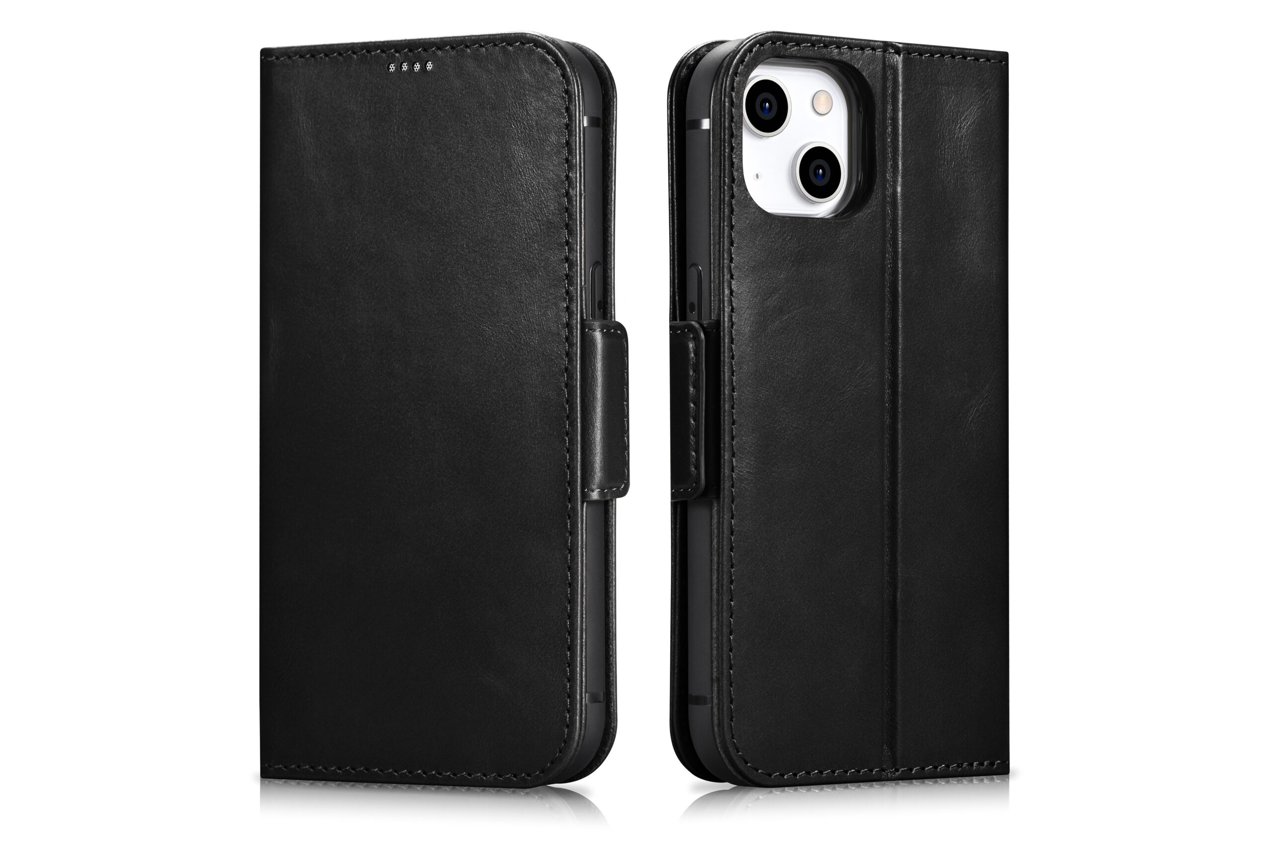Genuine leather wallet case for iPhone 14 – Black