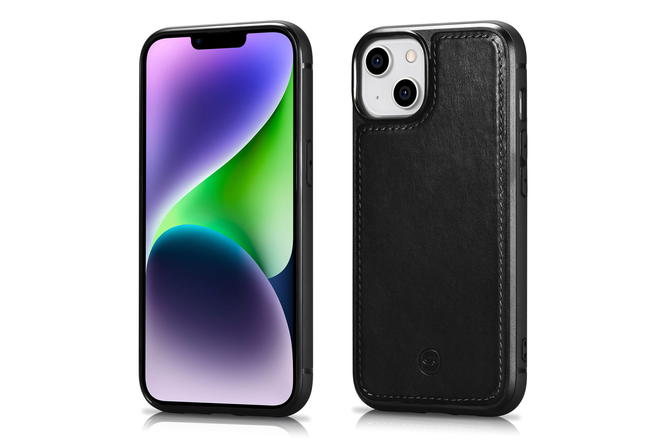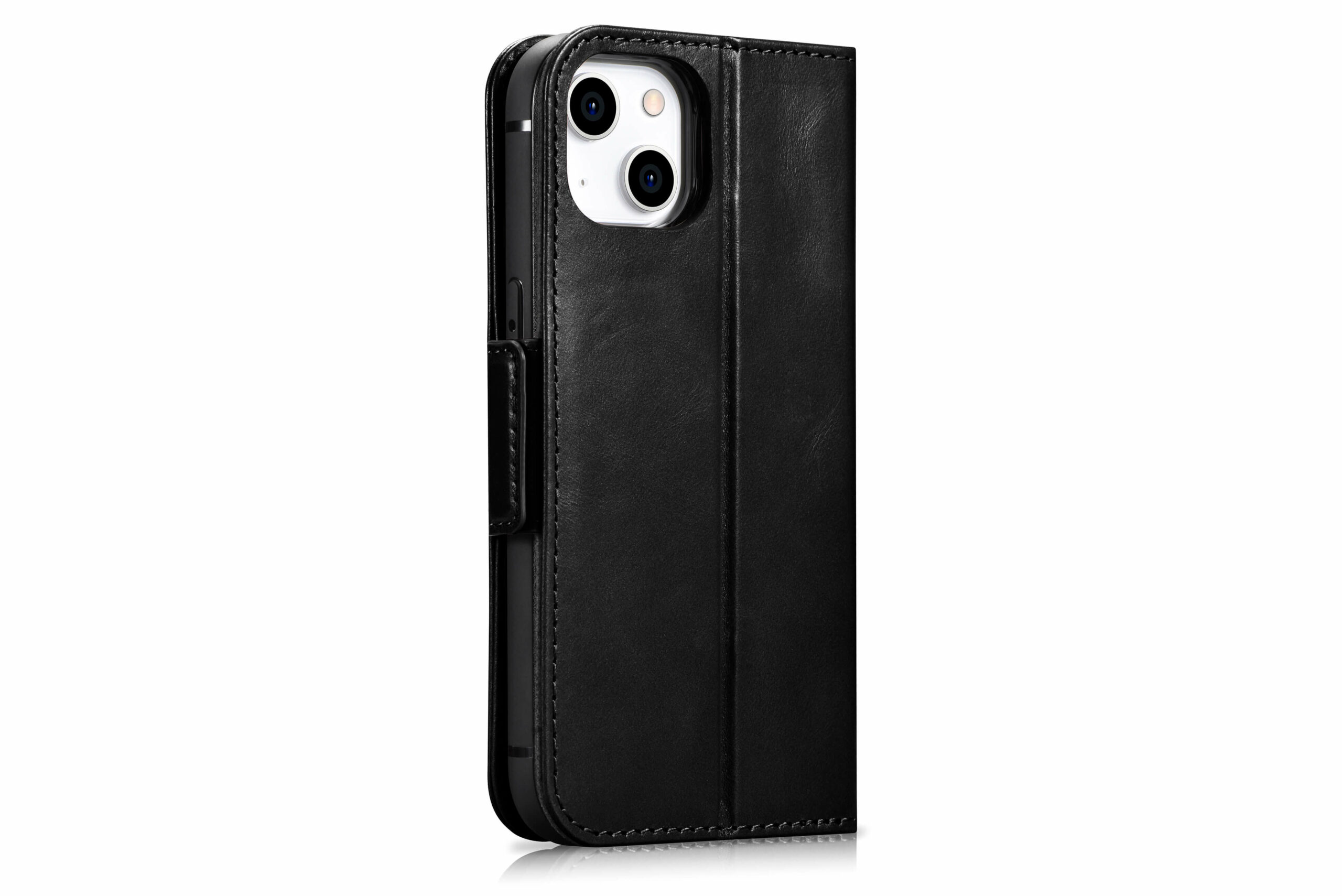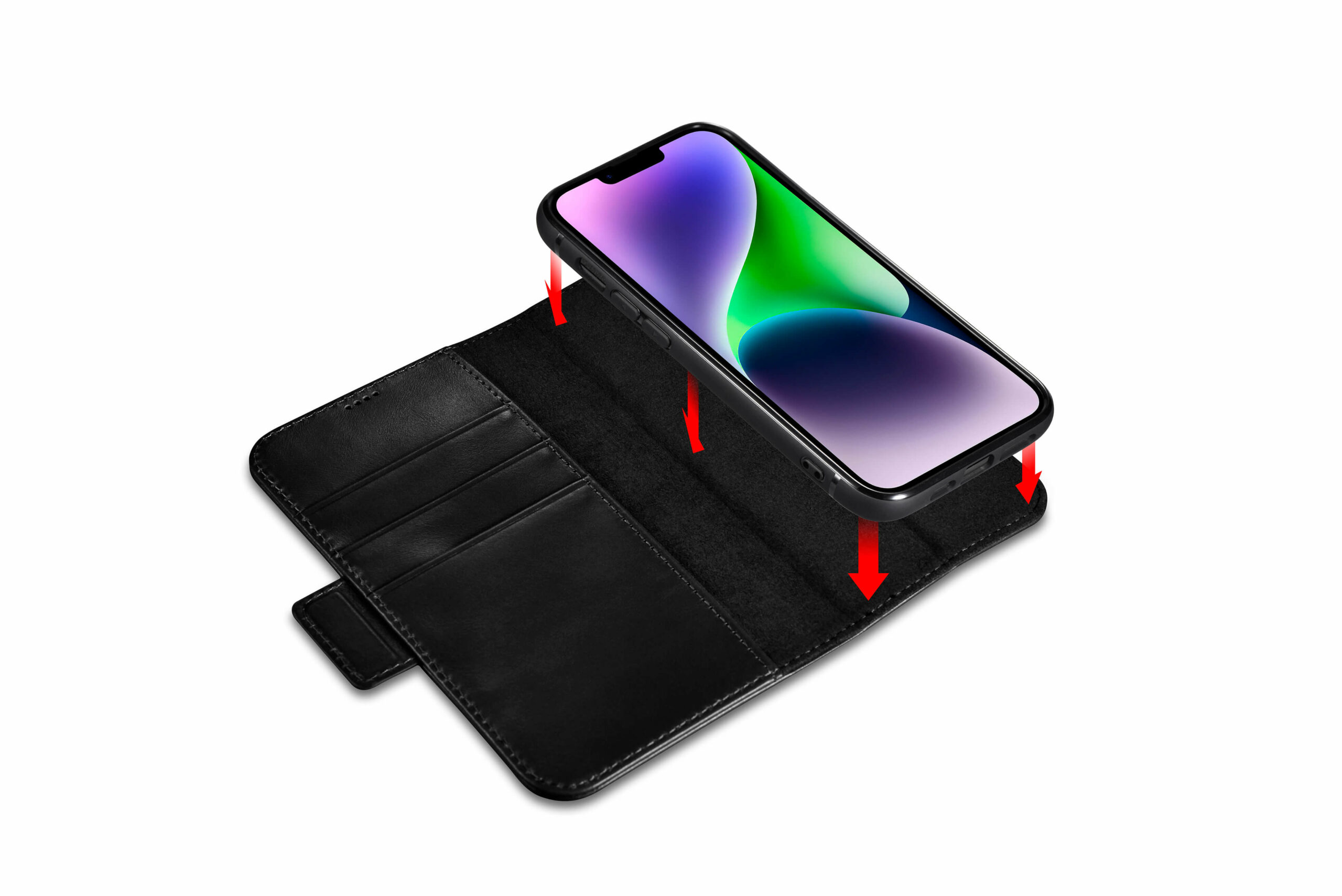 Genuine leather wallet case for iPhone 14 – Black